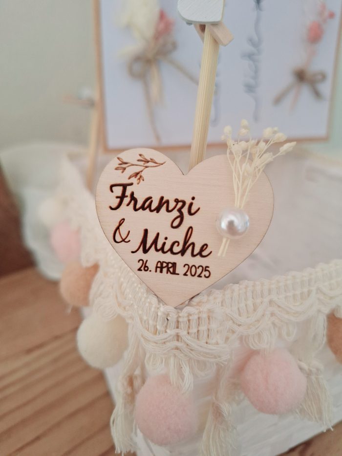 - personalisiert mit euren Namen und dem Hochzeitsdatum gravieren und fertigen wir deine Anstecker mit Sorgfalt und viel Liebe zum Detail. Durch die Gravur mittels Laser sind neben der Personalisierung präzise Details umsetzbar.