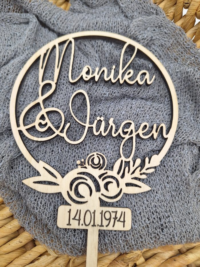 Unser personalisierter Cake Topper wird deiner Hochzeitstorte an einem der schönsten Tage deines Lebens eine ganz besondere Note verleihen.