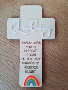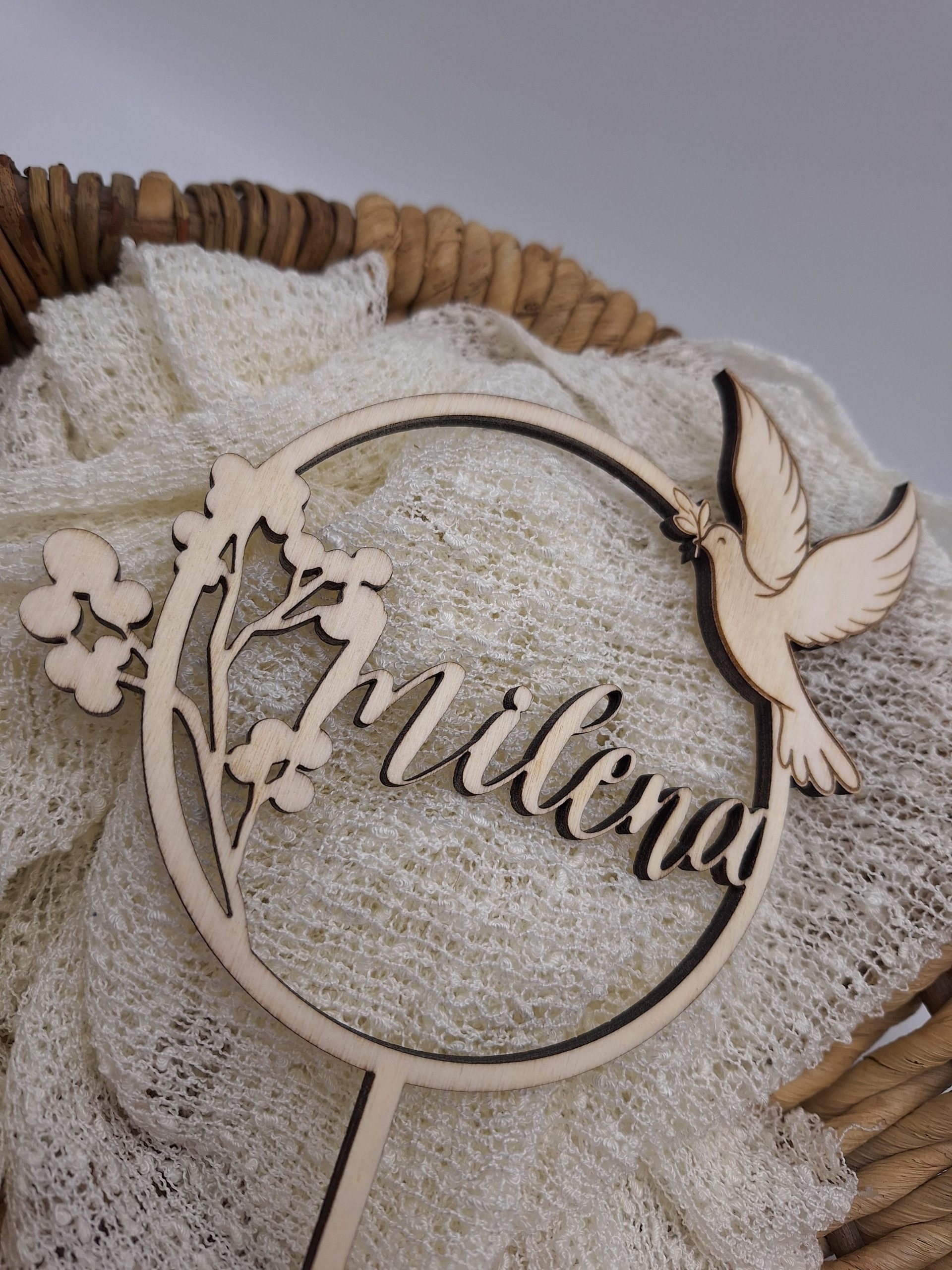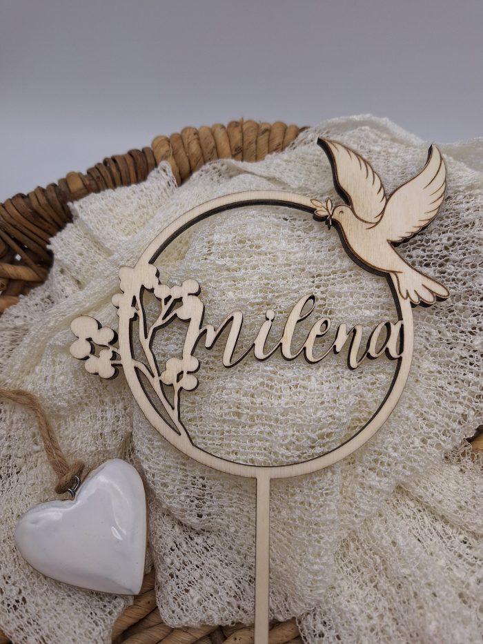 Der Cake Topper wird für dich mit dem Namen, falls gewünscht auch mit dem Datum der Taufe personalisiert. So verleiht er der Torte zur Feier eine ganz besondere Note und kann zur Erinnerung aufbewahrt werden.
