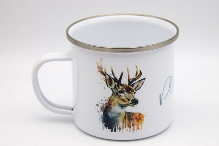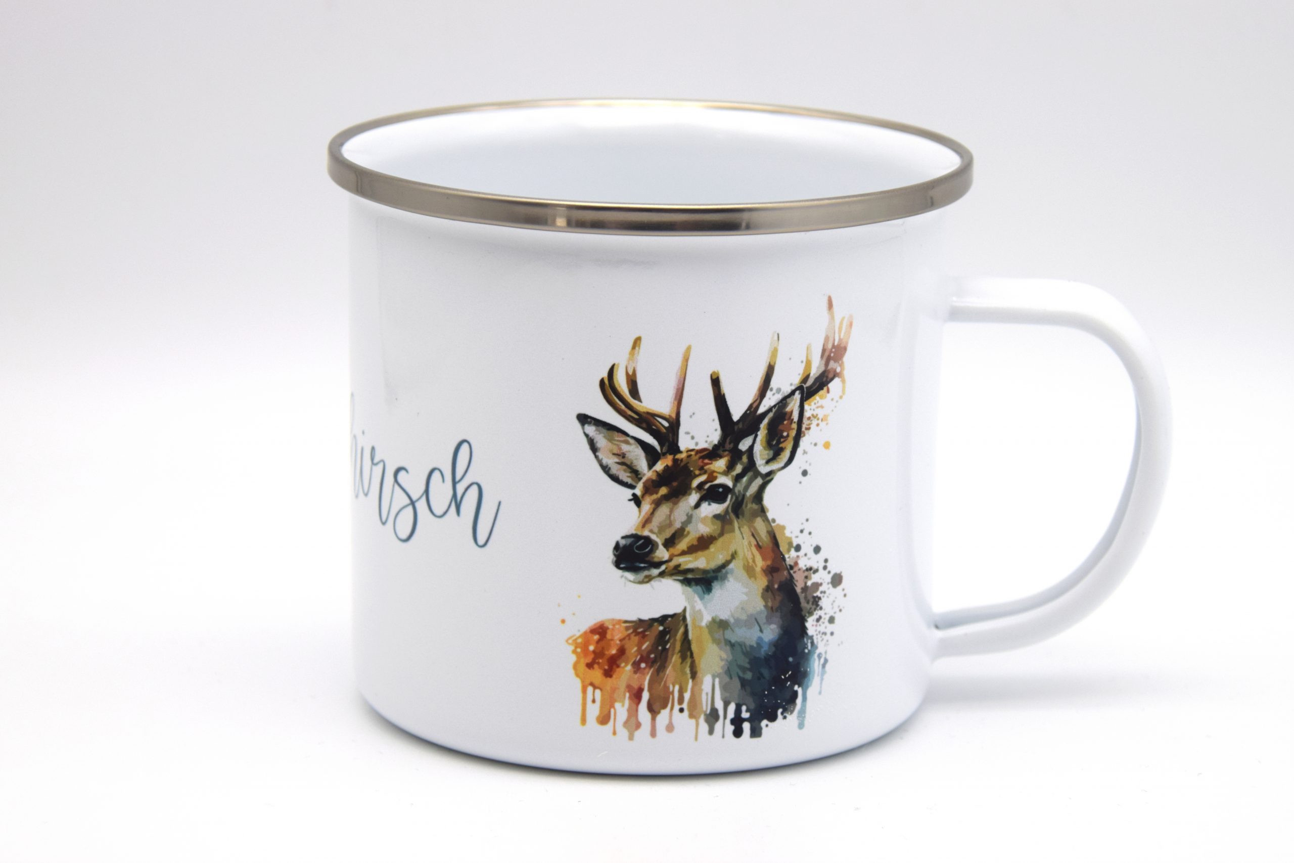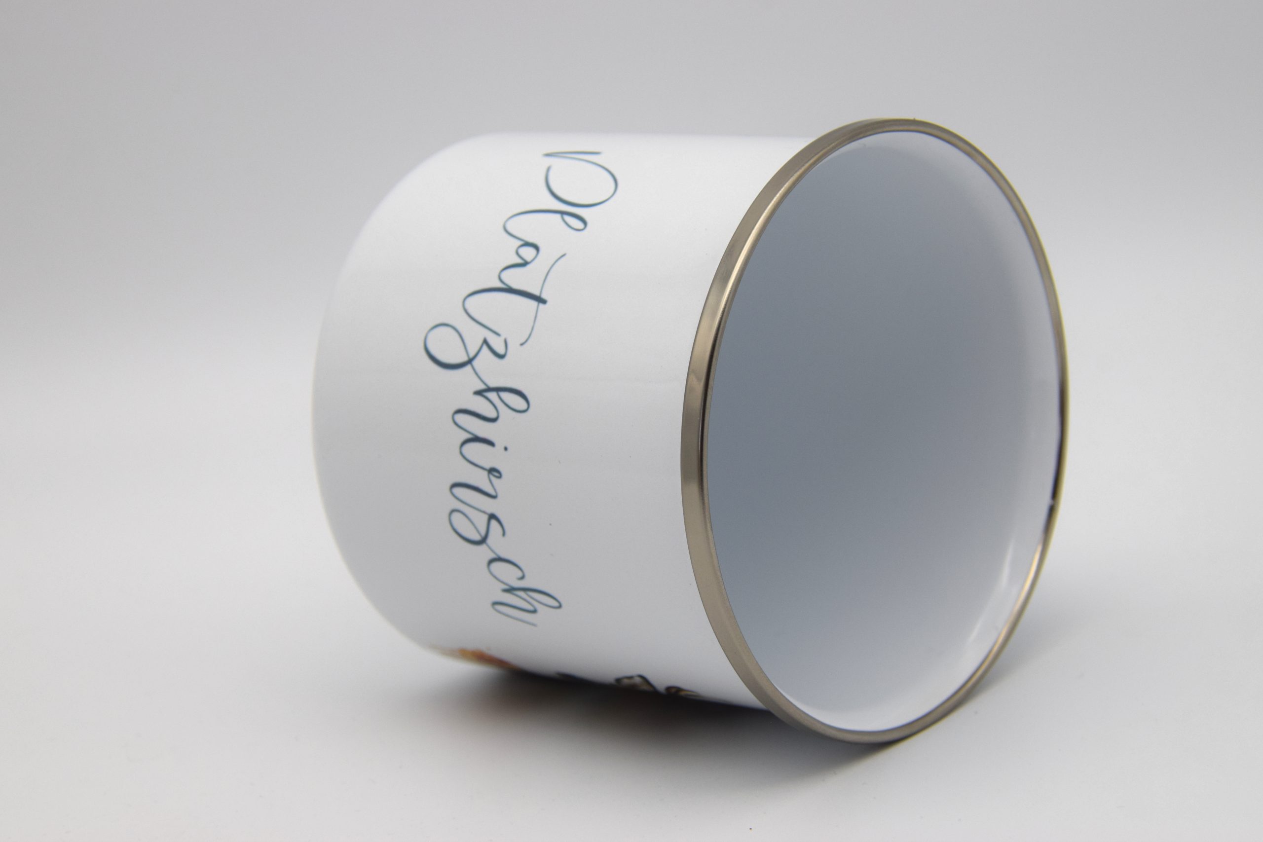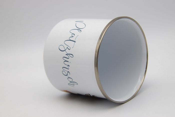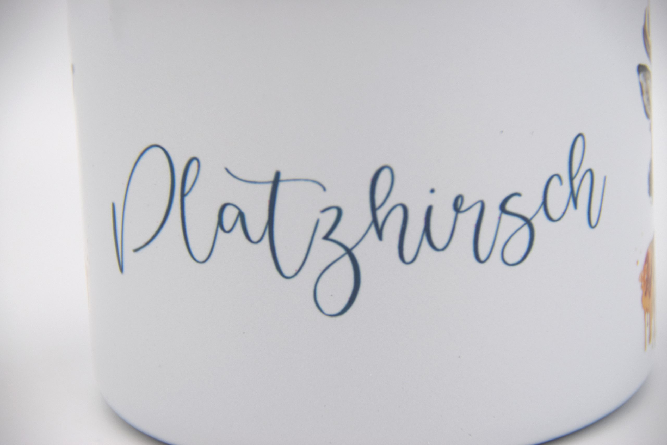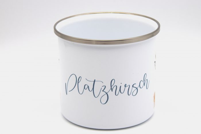 Mit unserer Emailletasse „Platzhirsch“ dürfte klar sein, wer der Big Boss ist 😉 Die Tasse kann auf Wunsch auch personalisiert werden.