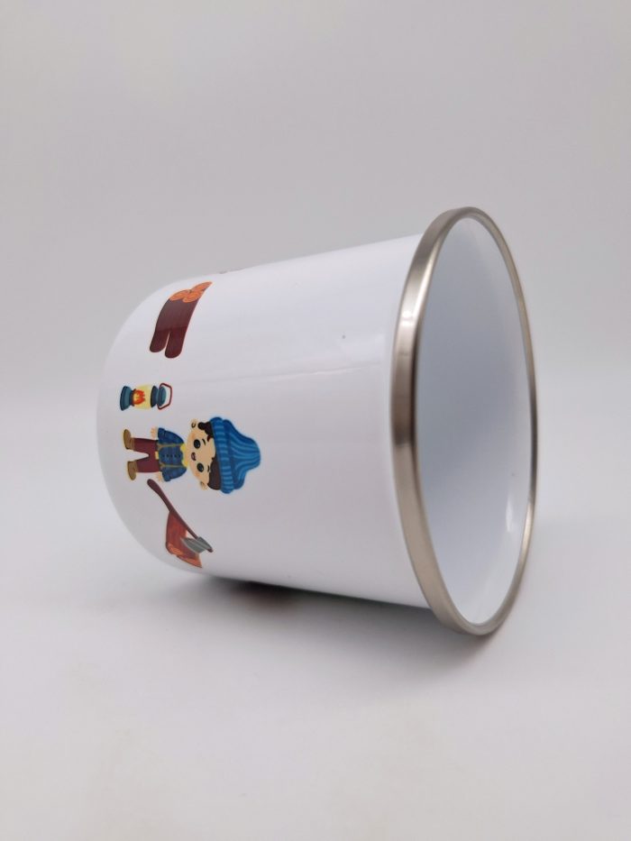 - VERBRENNUNGSGEFAHR: Beim Einfüllen heißer Getränken besteht Verbrennungsgefahr. Die Emailletasse kann sehr heiß werden.