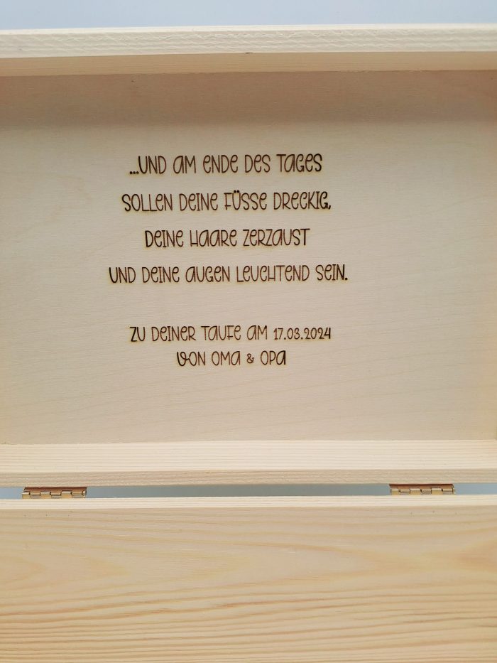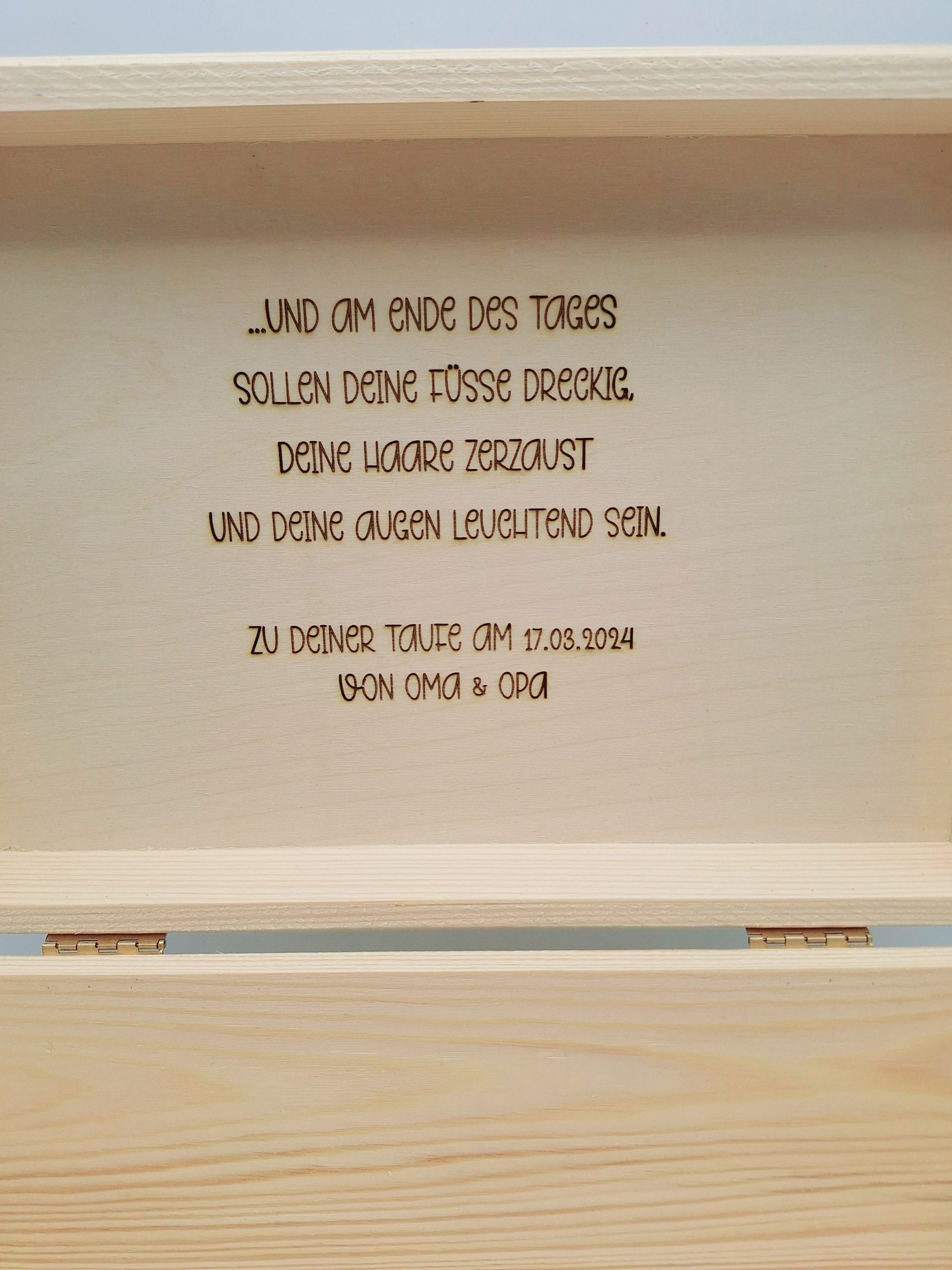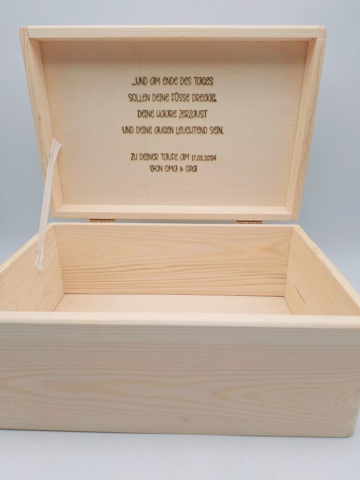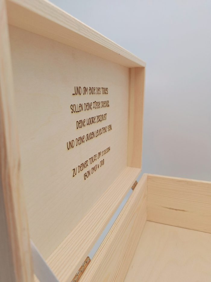 Mit Innendeckelgravur wird die Kiste zu einem ganz besonders persönlichen Geschenk.