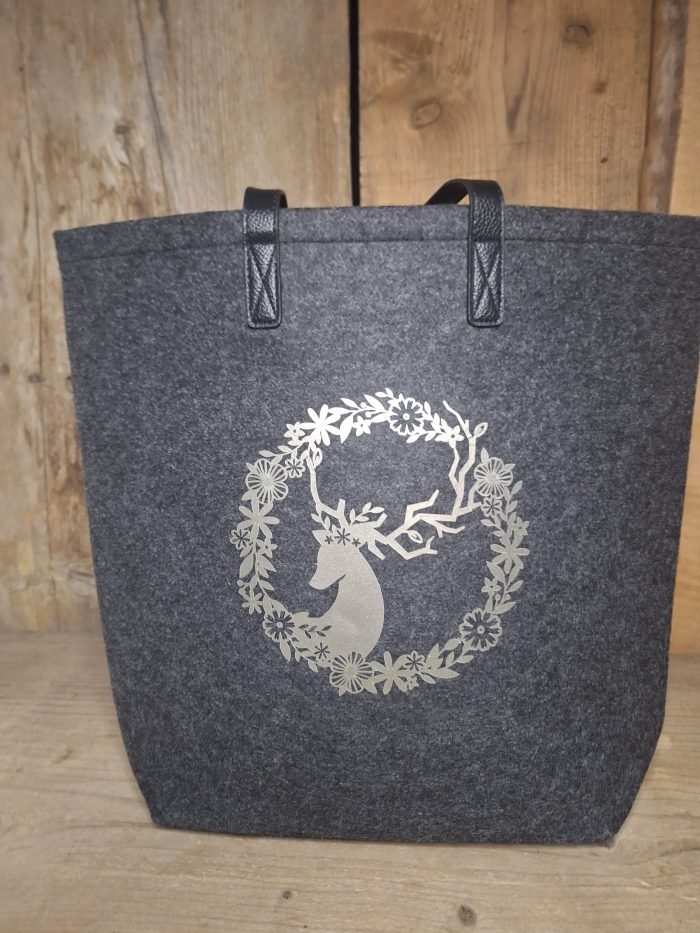 Unsere Filztasche mit Henkeln in Lederoptik ist ein toller Begleiter auf deinen Einkaufstouren und Ausflügen. Die Henkel sind 70 cm lang, daher kann sie bequem als Schulter- oder Tragetasche genutzt werden. Ein wunderbares Mitbringsel oder Geschenk für deine beste Freundin, Mama, Schwester…