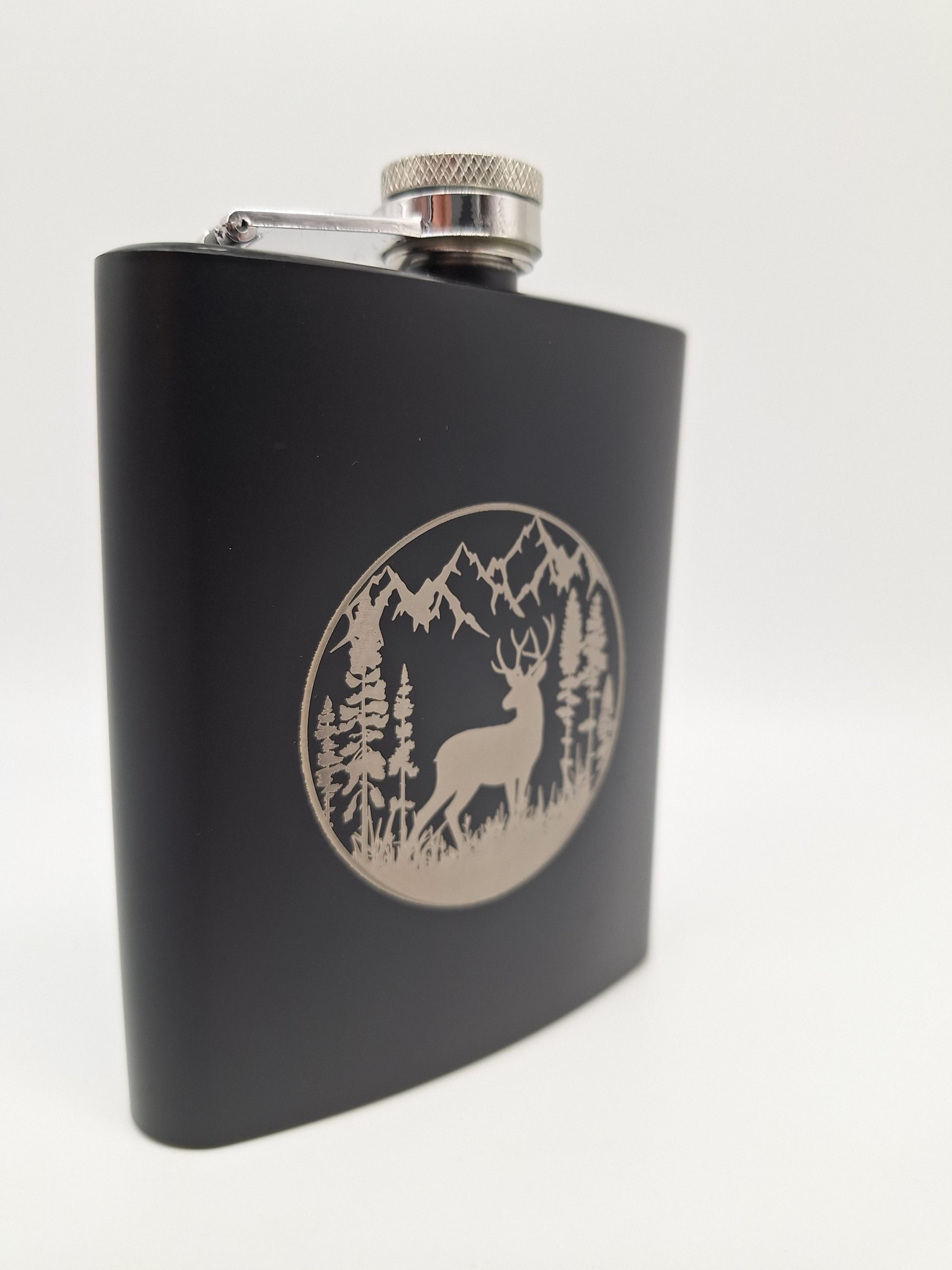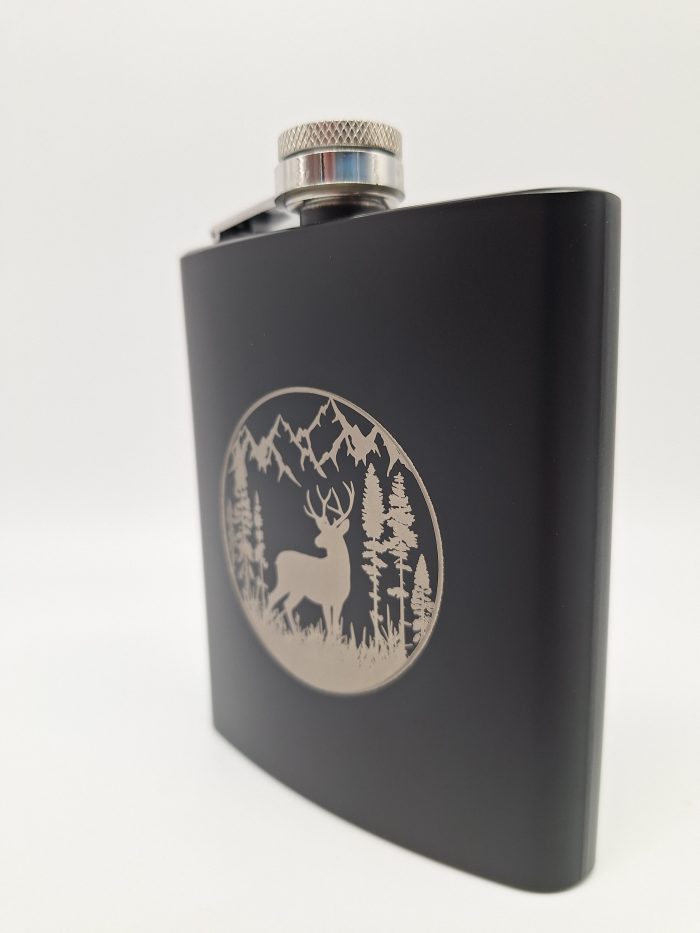 Flachmann aus Edelstahl mit schwarzer Lackierung und Gravur: das perfekte Männergeschenk – natürlich auch für Frauen oder einfach mal für dich!