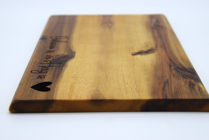 - Nach der Gravur werden unsere Bretter fein geschliffen und anschließend mit Bio-Öl versiegelt, du kannst das von Zeit zu Zeit wiederholen