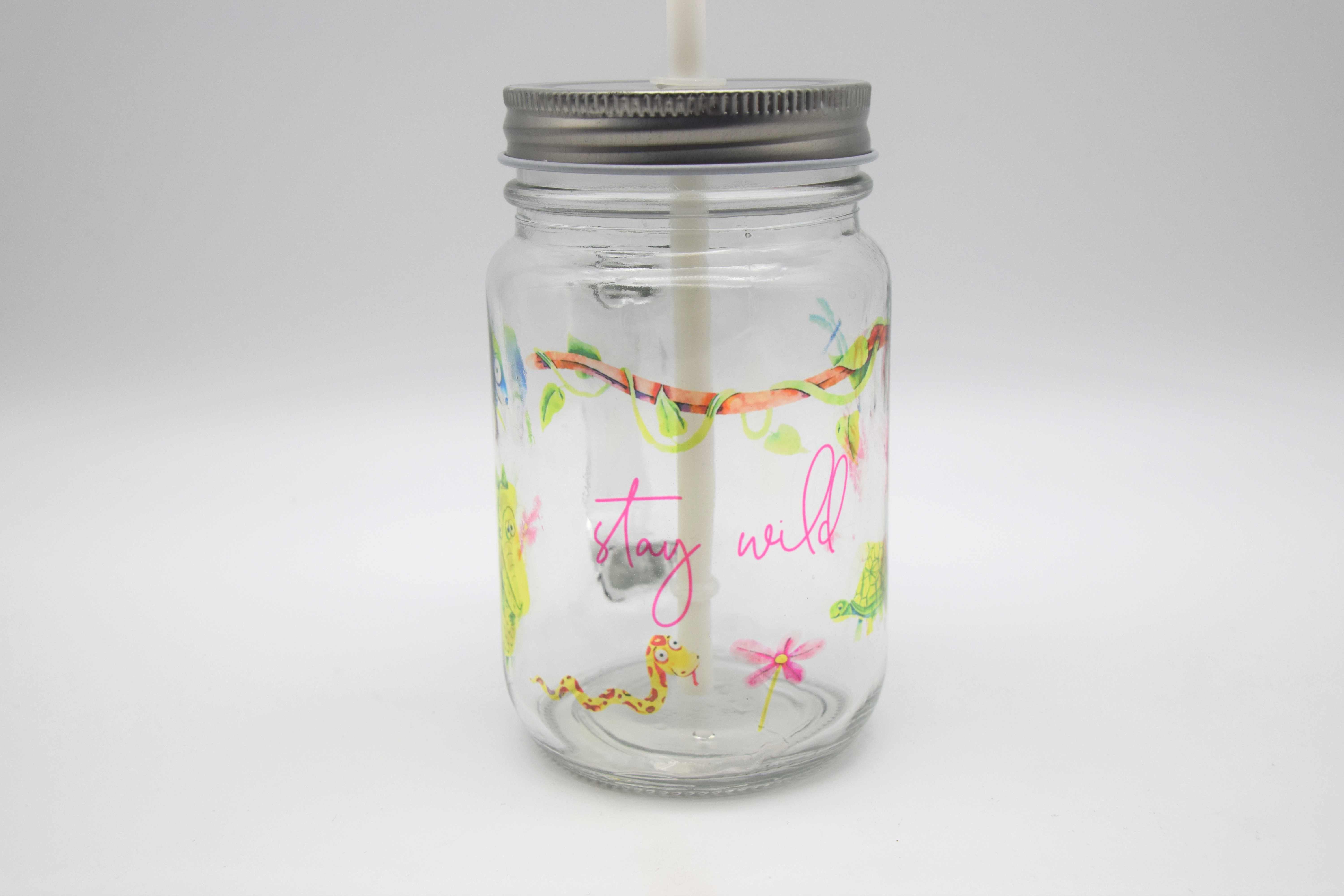 Sommer, Sonne, Sonnenschein – und eine kühle Erfrischung aus unseren sommerlichen Henkelgläsern. Für Kinder wunderbar geeignet – und auch eine tolle Geschenkidee im Sommer. Mit deinem Glas erhältst du einen Metallstrohhalm und einen abdichtenden Strohhalm aus Plastik für Kinder, damit nichts verschüttet werden kann.