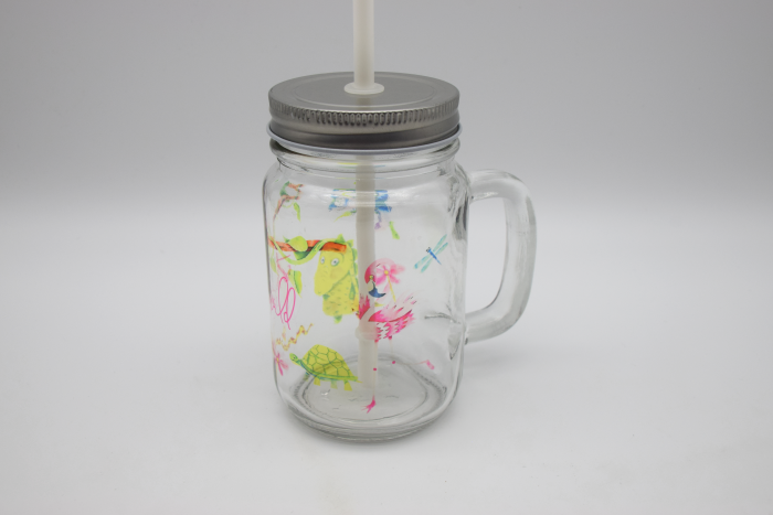 - Material: Glas, Metalldeckel, Metall- und Plastikstrohhalm