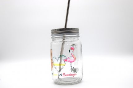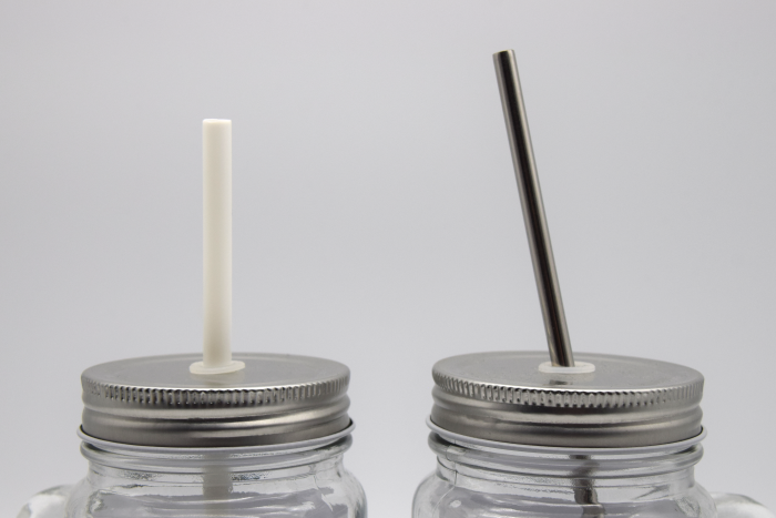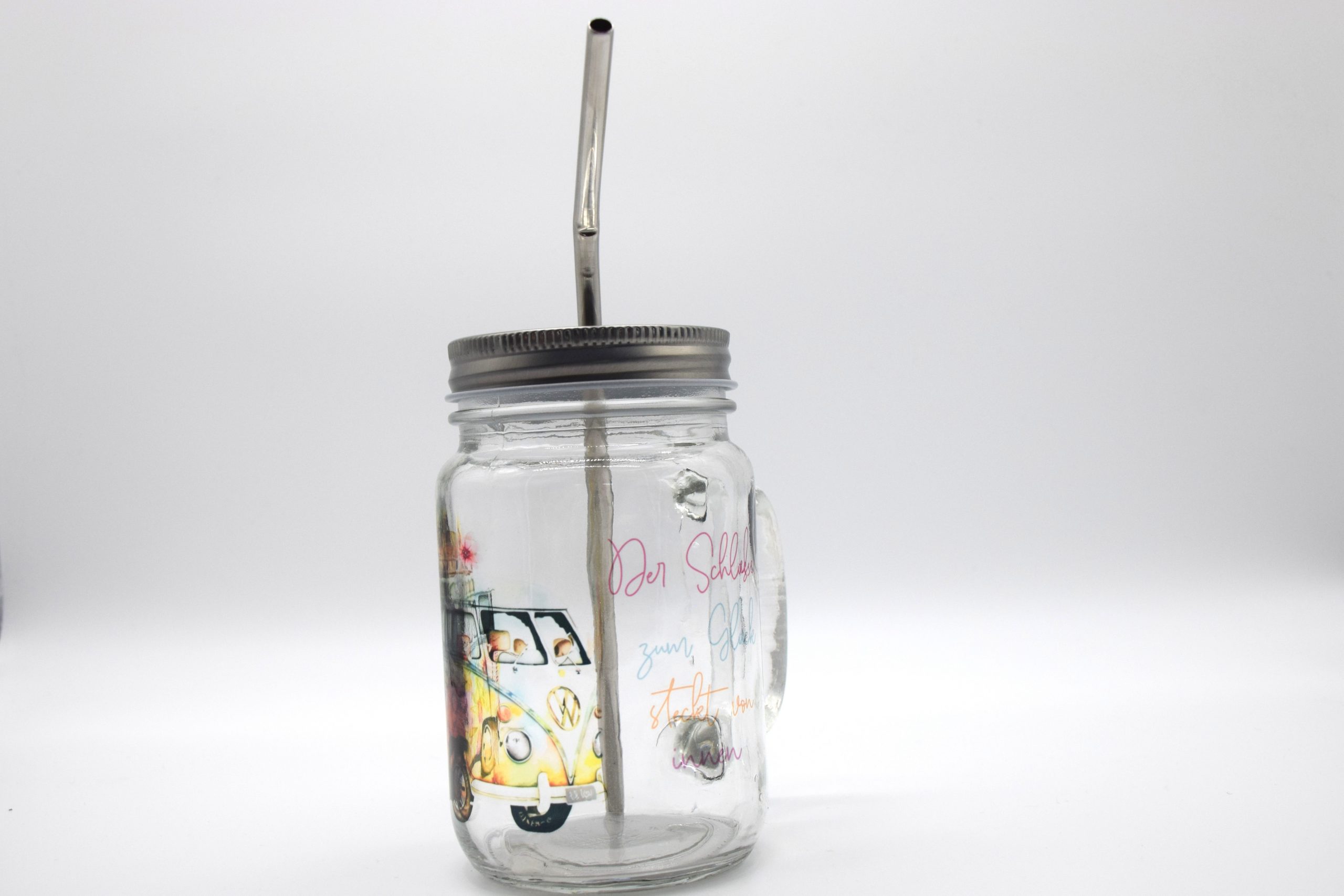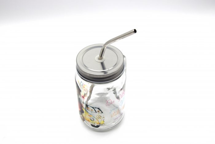 - Material: Glas, Metalldeckel, Metall- und Plastikstrohhalm