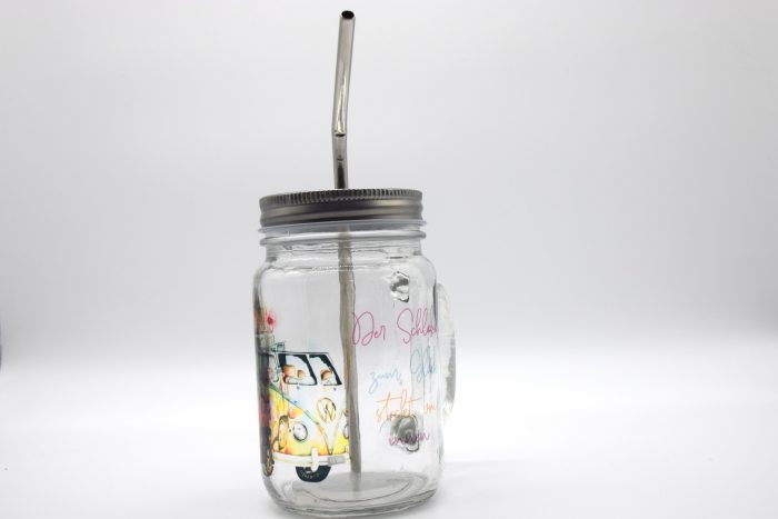 Sommer, Sonne, Sonnenschein – und eine kühle Erfrischung aus unseren sommerlichen Henkelgläsern. Für Kinder wunderbar geeignet – und auch eine tolle Geschenkidee im Sommer. Mit deinem Glas erhältst du einen Metallstrohhalm und einen abdichtenden Strohhalm aus Plastik für Kinder, damit nichts verschüttet werden kann.