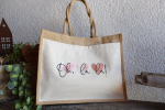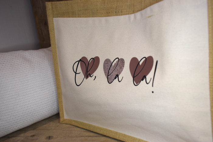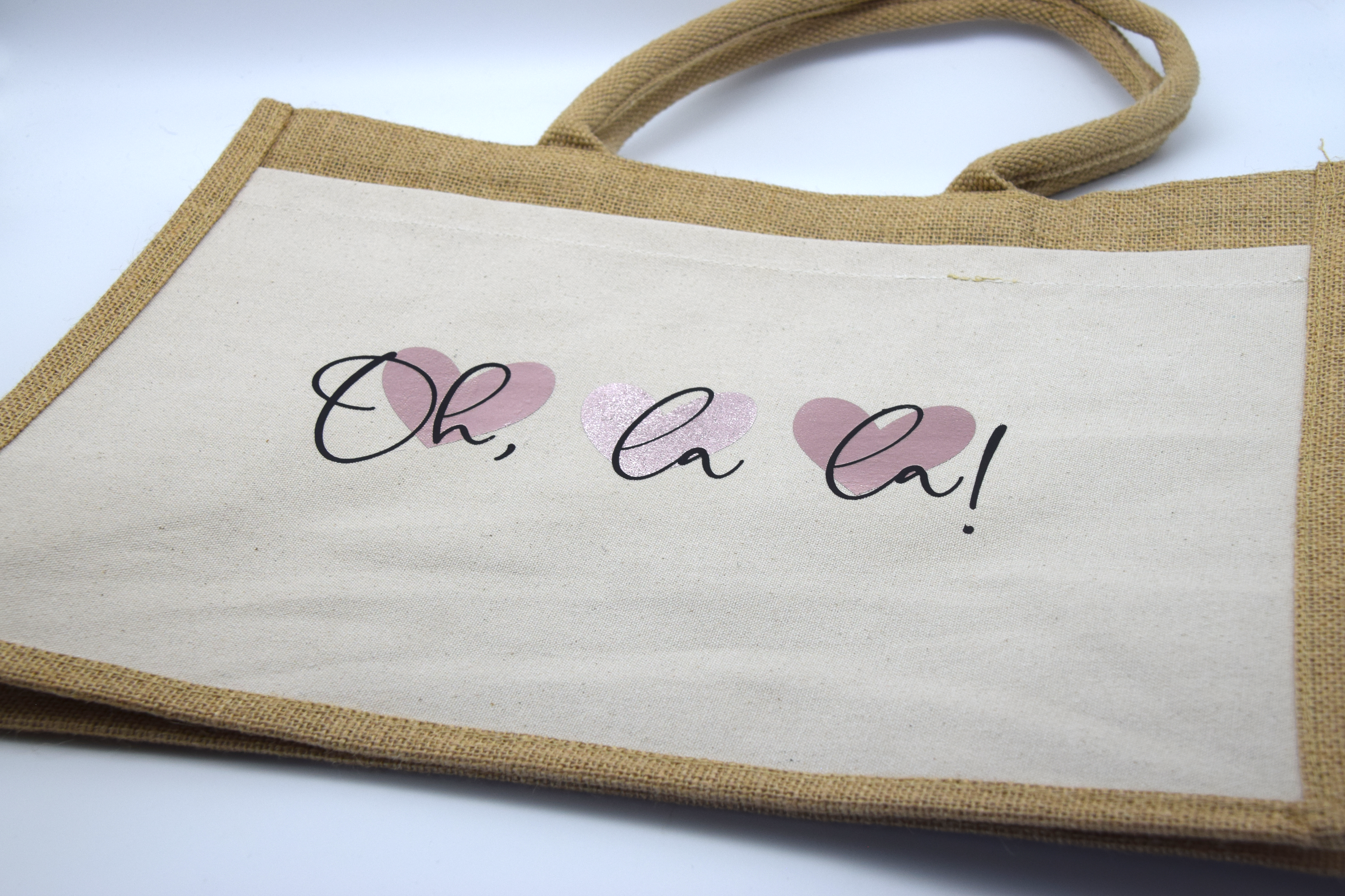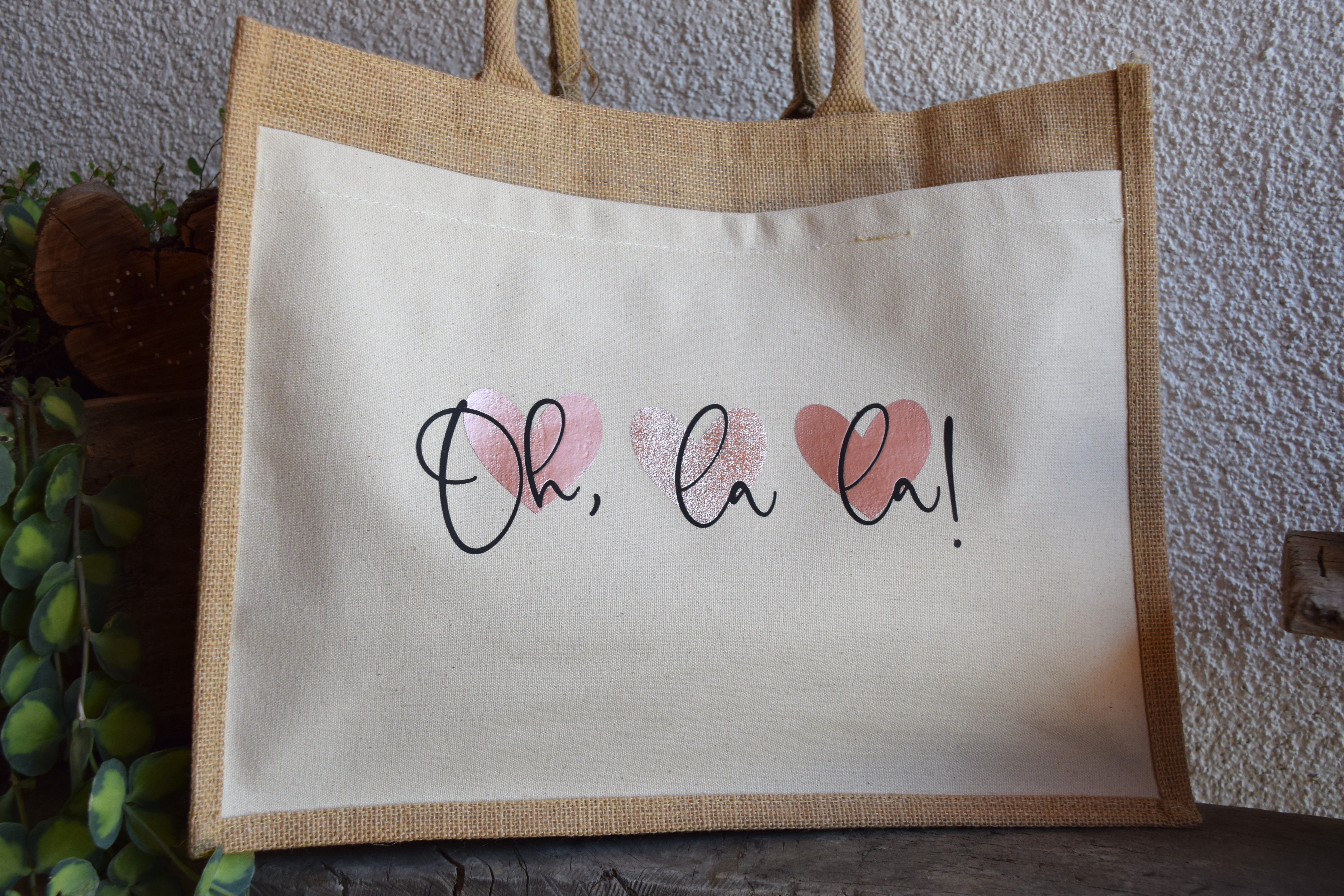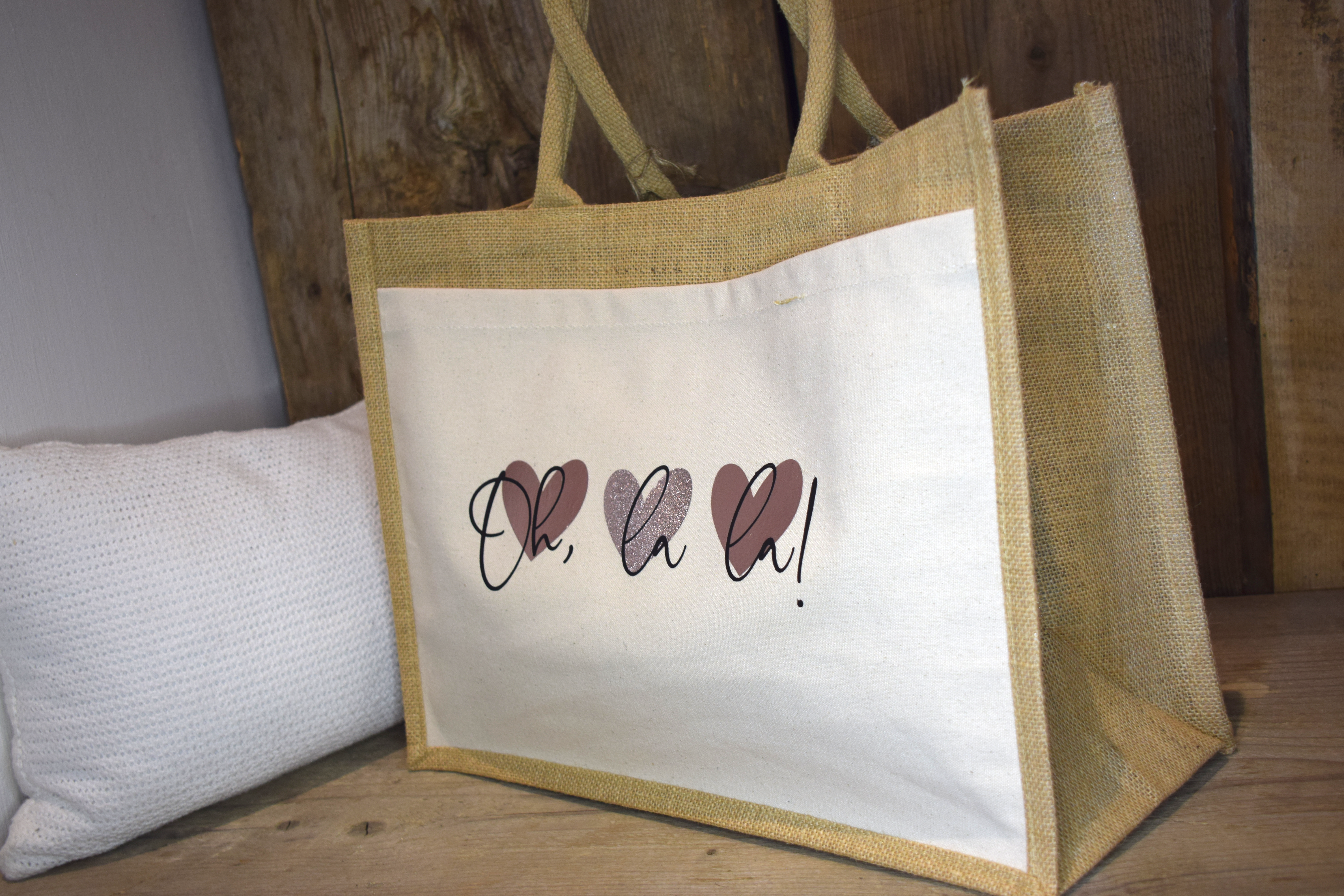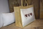 Tolle Jutetasche mit einem aufgesetzten Vorderfach aus Baumwolle zum praktischen Verstauen. Ein echtes Platzwunder! Die Jutetasche ist innen laminiert und kann mit einem feuchten Tuch gereinigt werden.