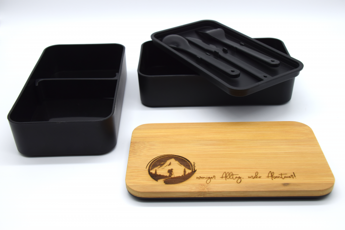 Unsere Lunchbox für alle, die auf den kleinen Hunger zwischendurch vorbereitet sein möchten. Ein perfekter Begleiter für die Schule, fürs Büro, Spielplatz, Camping oder eine schöne Wanderung. Sie besteht aus zwei separaten Dosen und einem Zwischendeckel mit Besteck (Messer, Gabel und Löffel). Auch ein variabler Trenneinsatz liegt bei.