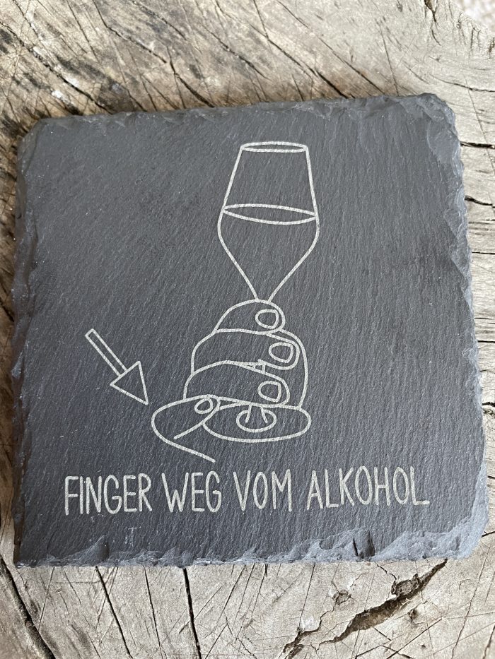 Schieferuntersetzer „Finger weg vom Alkohol“