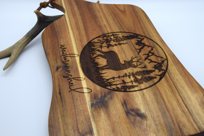 - Nach der Gravur werden unsere Bretter fein geschliffen und anschließend mit Bio-Öl versiegelt. Das kannst du von Zeit zu Zeit zur Pflege deines Servierbretts wiederholen
