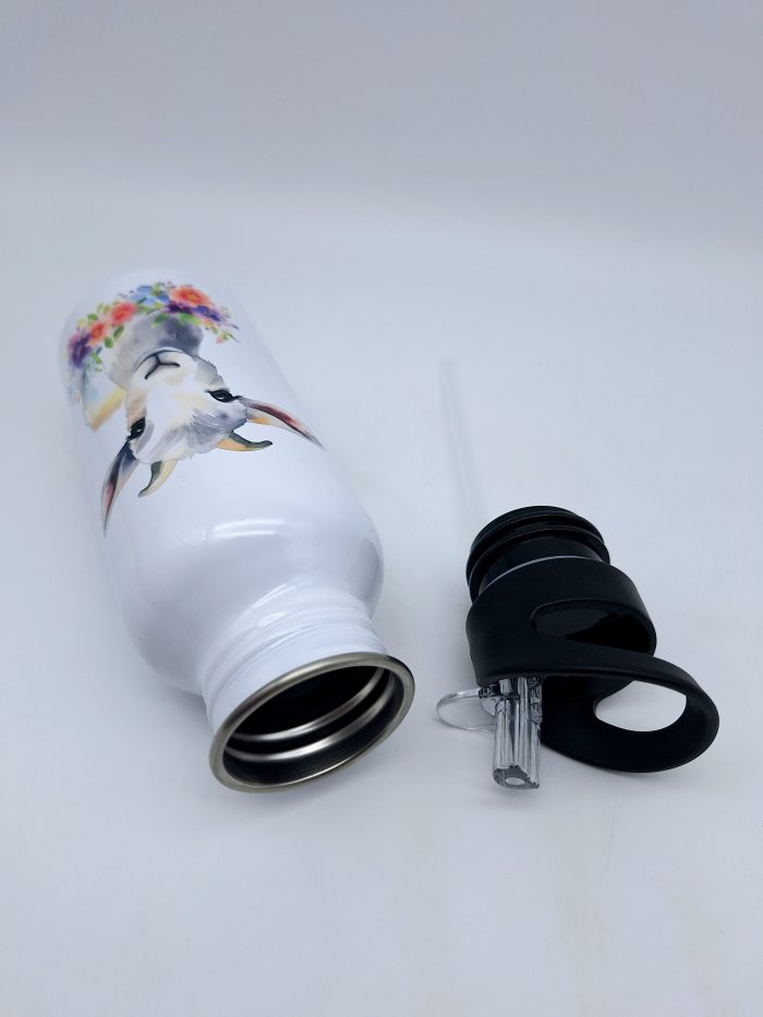 Trinkflasche aus Edelstahl: mit ihrem integrierten Trinkhalm zum Aufklappen und Drehverschluss ist sie besonders für Kinderhände gut geeignet. Ein perfekter Begleiter für Kindergarten oder Schule, zum Sport oder auf dem nächsten Ausflug. Wahlweise in zwei unterschiedlichen Größen erhältlich.