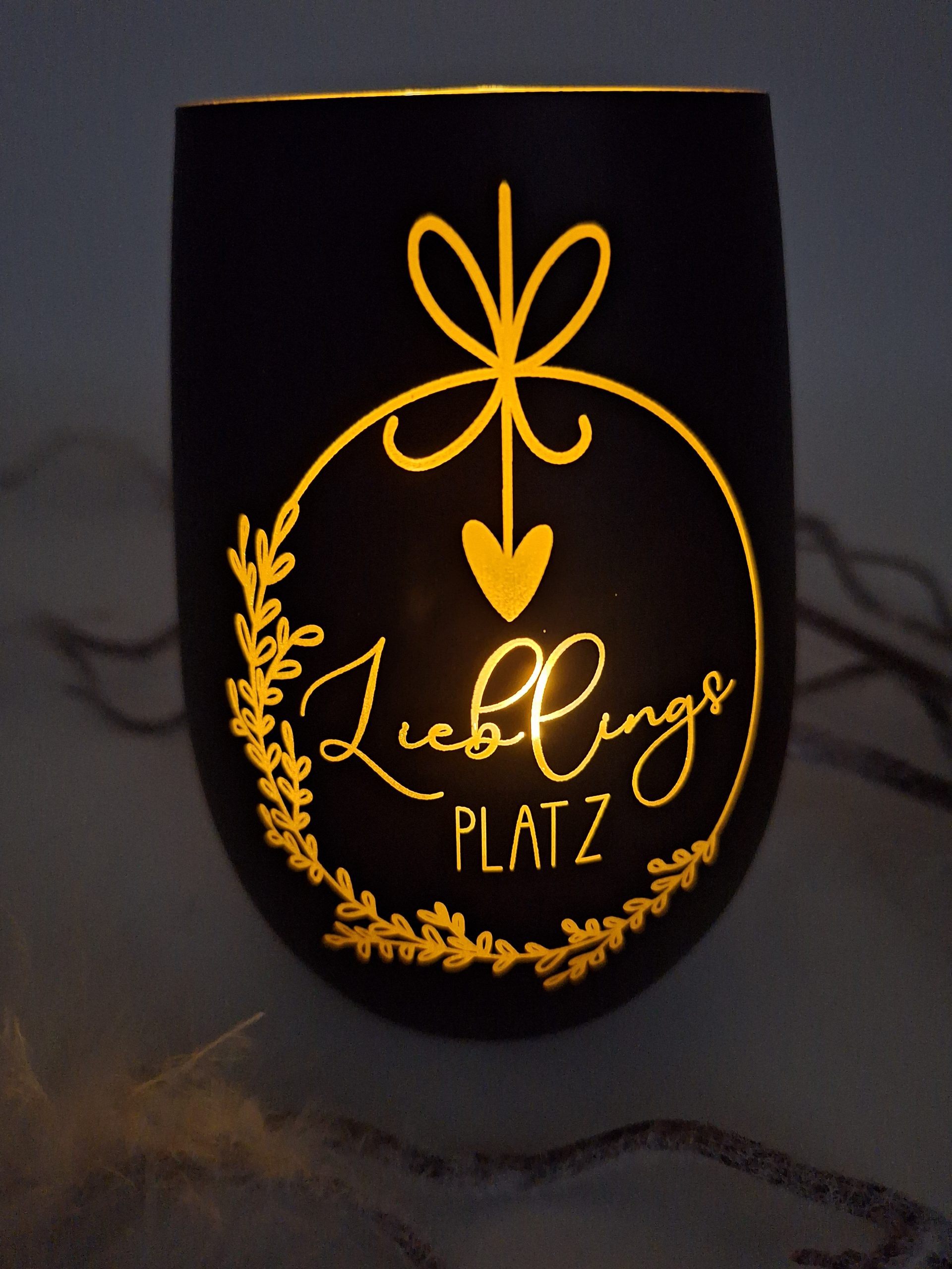 Windlichtglas schwarz-gold „Lieblingsplatz mit Herz“
