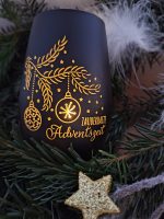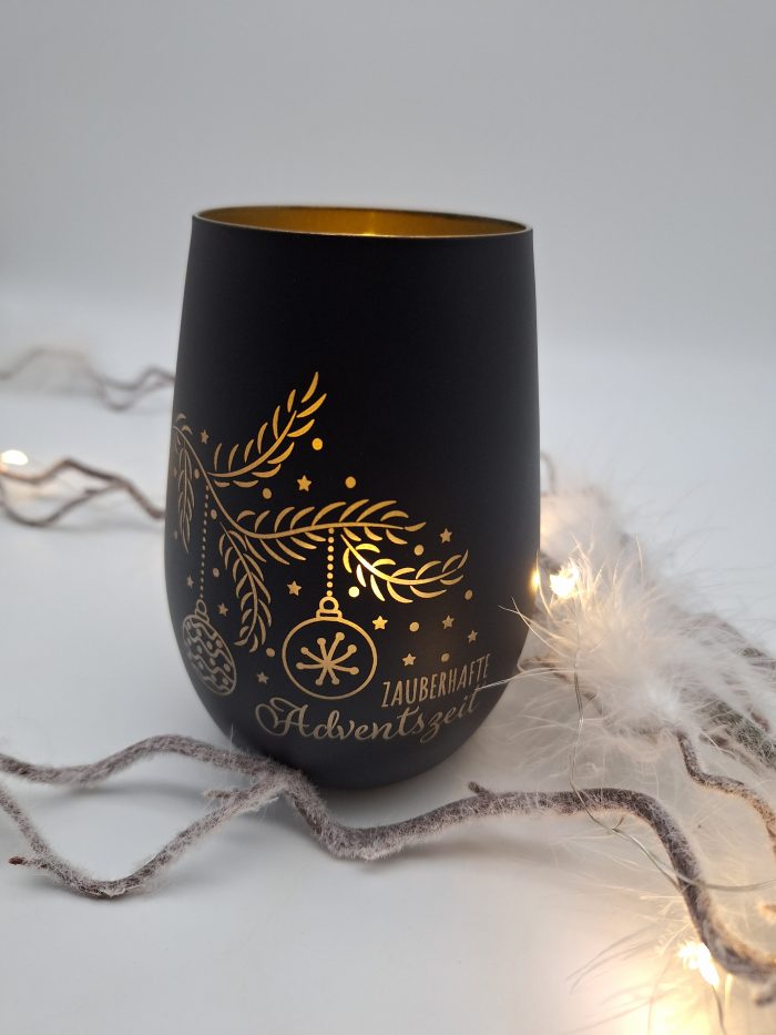 Windlichtglas schwarz-gold „zauberhafte Adventszeit“
