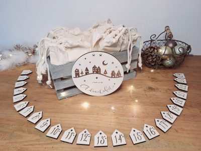 Bausatz für deine ADVENTSKISTE: Schild & Zahlenanhänger