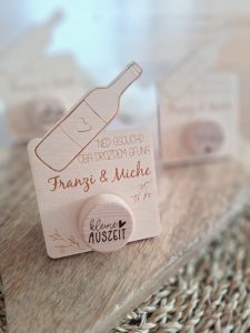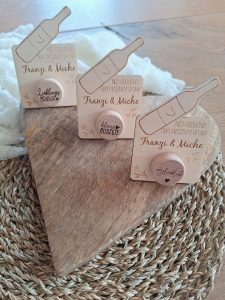 Gastgeschenk „Weinkorken mit personalisierter Holzkarte“